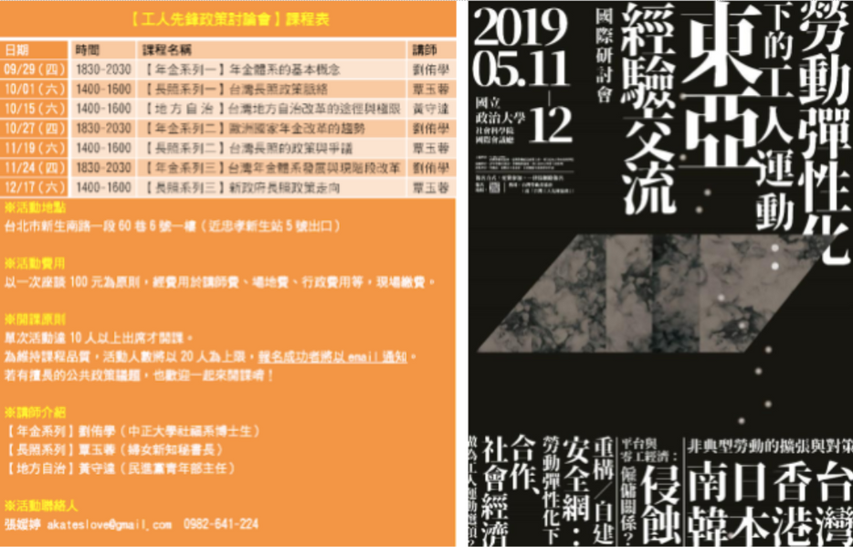 辦理勞工運動、社會政策研討會議。